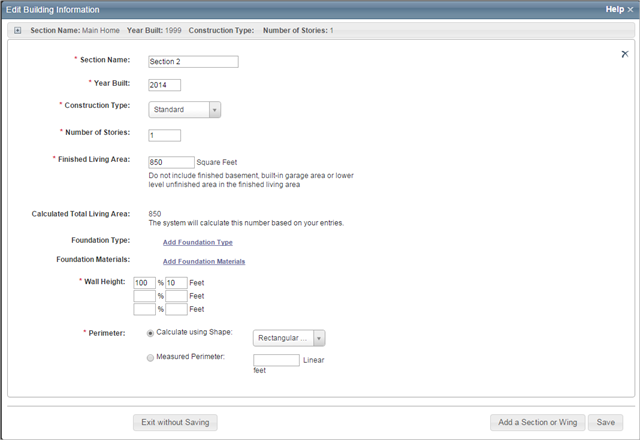 Note: If the year built is before 1940, you must also select Construction Type (Standard, Vintage, or Standard/Vintage combo).
