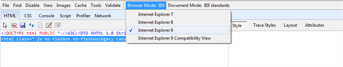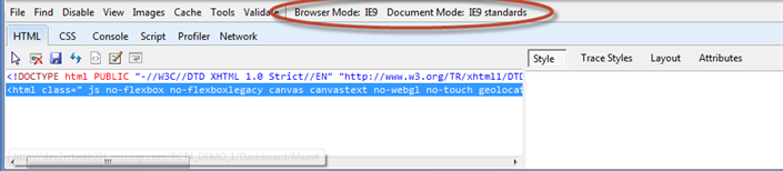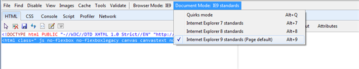 • Check two areas: Browser mode and Document mode.