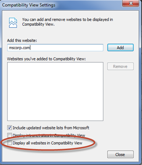 Making these settings will make sure that Compatibility View is turned off.