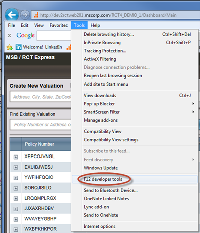 Note: Displaying the Tools menu in Internet Explorer