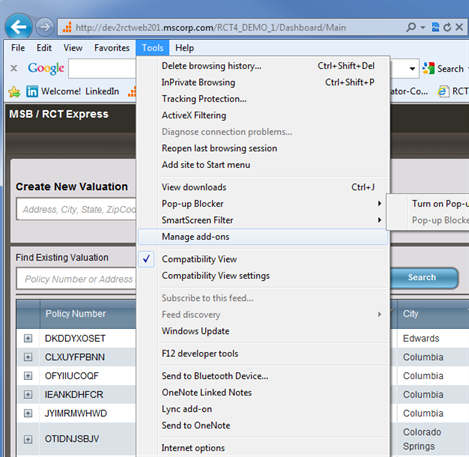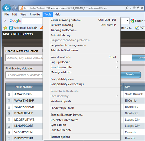 RCT Express has been tested in Internet Explorer with Compatibility View turned off. You may encounter less than optimal results if you have Compatibility View turned on, therefore we recommend that you turn off Compatibility View in Internet Explorer.