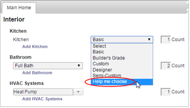 1. Under either Kitchens or Baths click the drop down list.