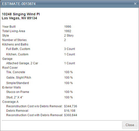 1. Click the Preview icon ( preview icon ) for the valuation you want to view. The valuation information appears in a popup window.