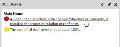 RCT Alerts provide decision making information, validation errors, and warnings.