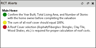 The system displays alerts in a slide out panel. On the Valuation page click the RCT Alerts tab to display the panel.
