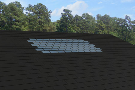 Bardeaux de toit qui contiennent des cellules solaires utilisés pour générer de l'électricité pour la maison. Ils sont conçus de façon à ressembler aux bardeaux de toit architecturaux conventionnels en asphalte ou en fibre de verre. Les bardeaux solaires peuvent être de la même dimension que les bardeaux standard. Comportant des cellules solaires semi-rigides, ils prennent la place d'un certain nombre de bardeaux conventionnels dans une rangée de bardeaux. Ils ressemblent aux bardeaux conventionnels ou utilisent une pellicule de cellules solaires qui se marie aux bardeaux conventionnels au niveau de la flexibilité et des dimensions. Ils produisent de l'électricité sous la forme de courant direct, ensuite converti en courant alternatif à l'aide d'un onduleur solaire. Le câblage des bardeaux solaires est acheminé à travers la toiture et jusqu'a l'onduleur. Les bardeaux sont posés en motif superposé tout comme des bardeaux architecturaux conventionnels en asphalte ou en fibre de verre.